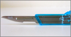 The BladeGlove Scapel System utilizes cartridges that attach directly to the handle with conventional design. Fully retractable cartridge exposes entire blade for optimal visualization during incision. Loading of the blade to the handle is done without any exposure to the sharp blade and can be removed and replaced or reattached at a later time.